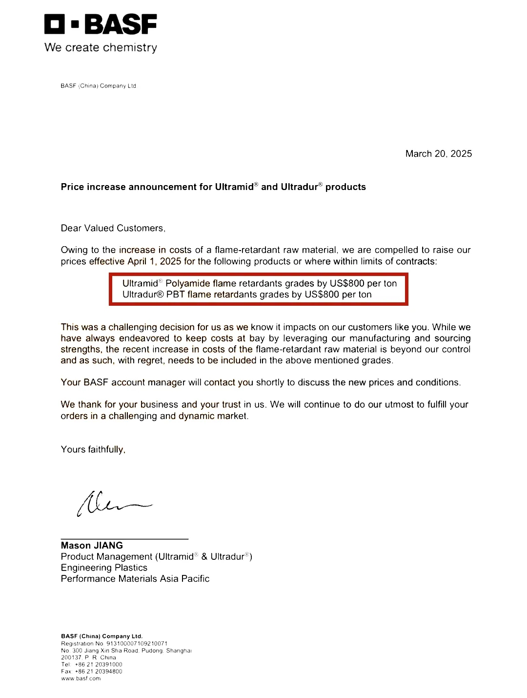 除此之外,近期,鈦白粉市場風云變幻,以龍佰集團、安納達等為代表的20多家國內(nèi)外鈦白粉企業(yè)相繼上調(diào)價格,已連漲三輪。今年內(nèi)國內(nèi)市場累計上調(diào)最高1100元/噸,海外最高累計調(diào)漲150美元/噸,海外巨頭科慕也宣布了第二季度的漲價計劃。